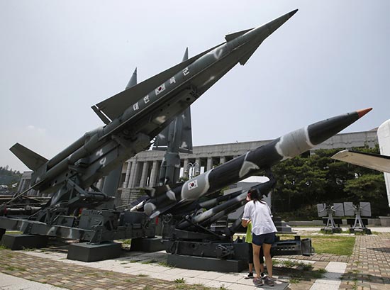 图:韩国战争纪念馆展示的导弹模型\美联社