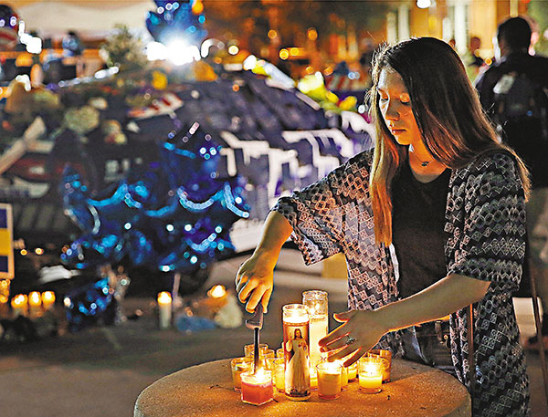 民众在达拉斯警察总部外点燃蜡烛。美联社