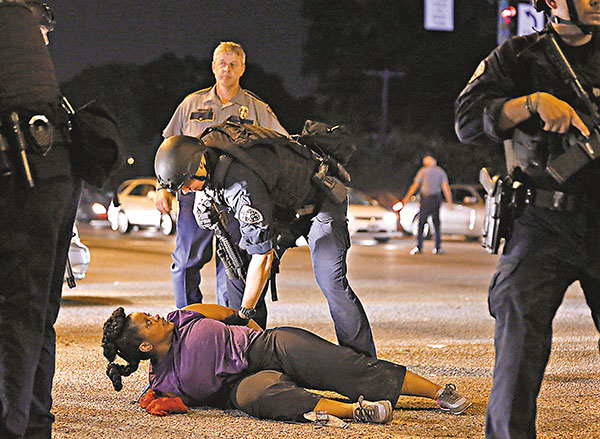 在37岁黑人男子斯特林被杀的路易斯安那州首府巴吞鲁日市,黑人组织黑豹党成员与防暴警察爆发冲突,警方拘捕约30人,并检获大批武器。田纳西、印第安纳和加州等地亦爆发示威。纽约的示威者冒雨游行,有参加者称看到黑人尸体不断堆积,感到愤怒,高呼不要种族歧视的警察。