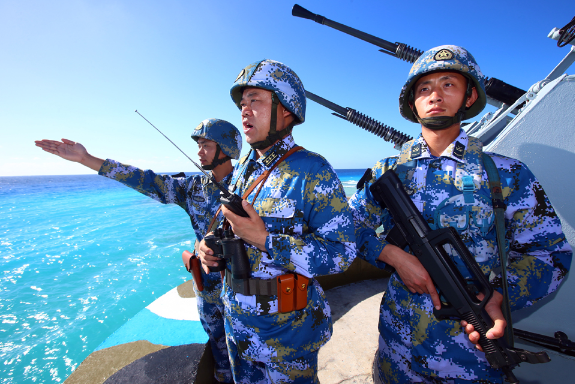 图:守卫在南沙群岛永暑礁上的中国海军官兵资料图片