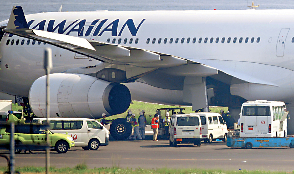 图:夏威夷航空公司一架客机18日迫降东京羽田机场/美联社
