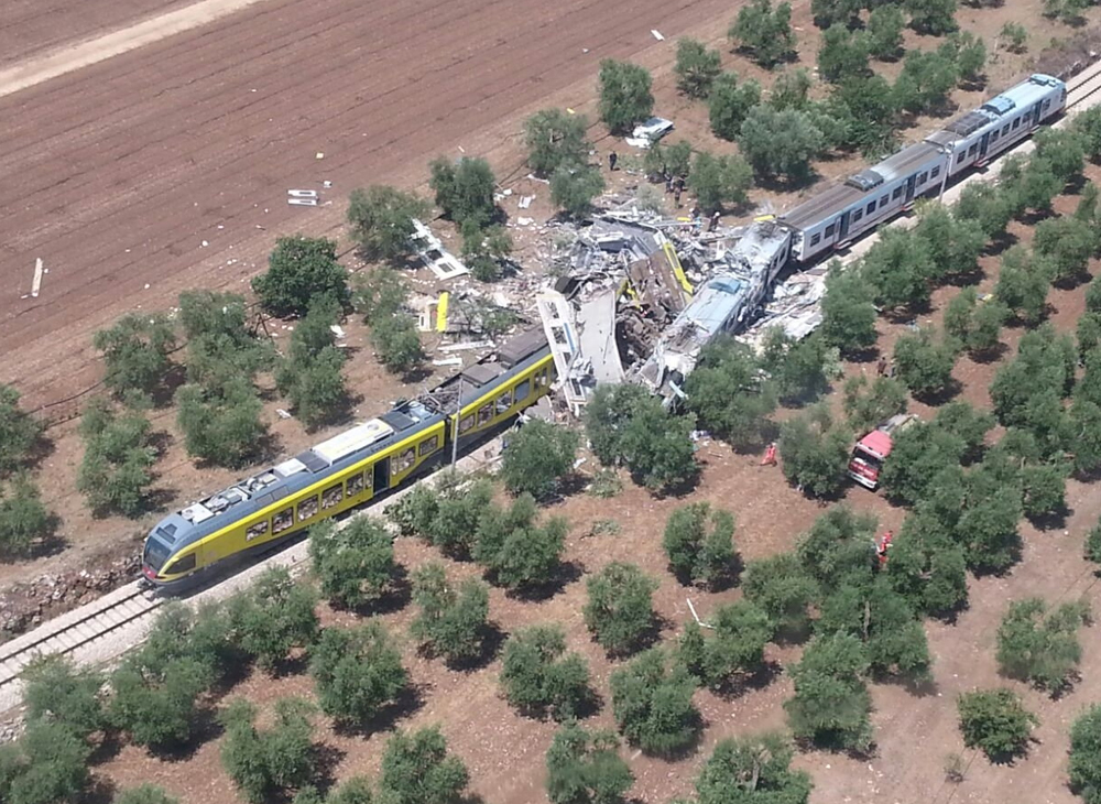 大公网7月13日讯 综合路透社、法新社、英国广播公司报道:意大利南部普利亚大区12日有两辆火车发生严重相撞事故,造成至少20人遇难,另有35人受伤,其中18人重伤。据救援部门消息,目前清理现场的工作仍在持续,死亡人数可能会继续上升。当地官员已呼吁民众前往附近医院捐血。