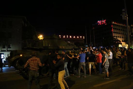 7月15日,在土耳其安卡拉街头,民众向坦克投掷石块/新华社