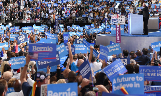 当天稍早,桑德斯发短信和邮件给支持者,希望他们支持希拉里,集中力量在11月8日的大选中击败共和党对手特朗普,不要喝倒彩,因为那正是特朗普想要的结果。桑德斯在当晚做压轴演讲前,情绪激动的支持者足足喊了将近三分钟仍无法安静下来,桑德斯不得不多次扯着嗓门说话,试图让支持者安静下来。他说,尽管众所周知他与希拉里在一些议题上的观点不一致,但是希拉里.克林顿将会成为一个杰出的总统,我很荣幸今晚站出来支持她。当桑德斯宣布支持希拉里参选时,许多桑德斯的支持者对他发出了嘘声。