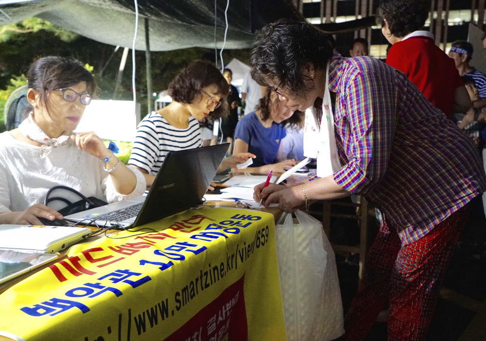 韩国民间团体反对部署萨德斗争委员会发起撤销在韩部署‘萨德’反导系统决定的活动/中新社