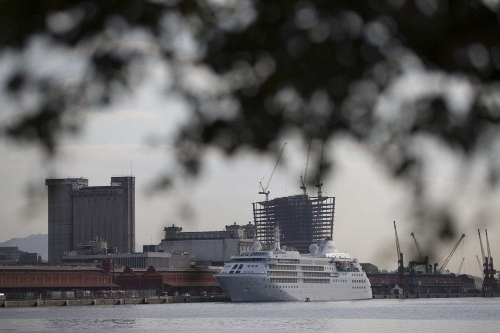 图:停靠在里约海岸边的邮轮银云号\美联社