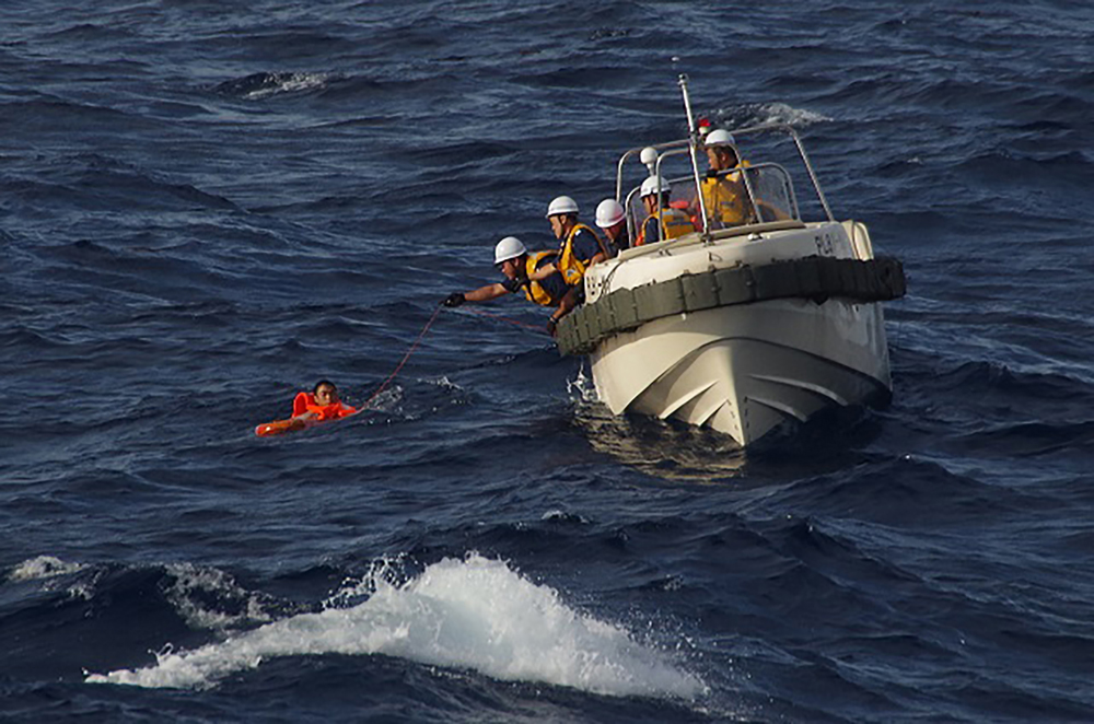图:日方发布相片显示,日本海上保安厅救生艇救起被撞沉中国渔船的船员/法新社
