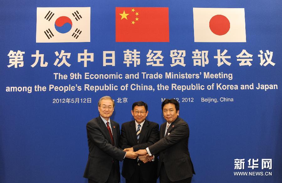 第九次中日韩经贸部长会议2012年5月12日在北京举行。部长们提出,正式签署中日韩投资协定并于年内启动中日韩自贸区谈判的建议。 图:新华网