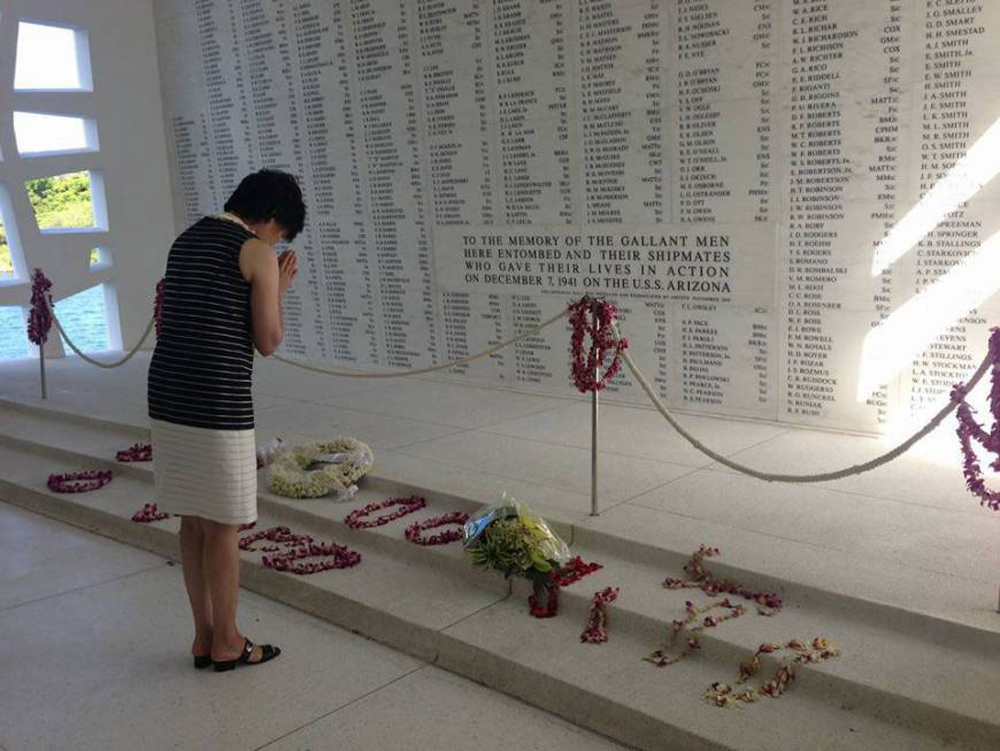 图:安倍昭惠22日参观位于珍珠港的美国海军亚利桑那号纪念馆 安倍昭惠Fb页面