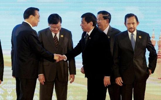 当地时间9月7日,中国国务院总理李克强在老挝万象出席东亚合作领导人系列会议期间,同菲律宾总统杜特尔特进行了交谈,杜特尔特表达了愿改善对华关系的积极愿望。 图:新华网