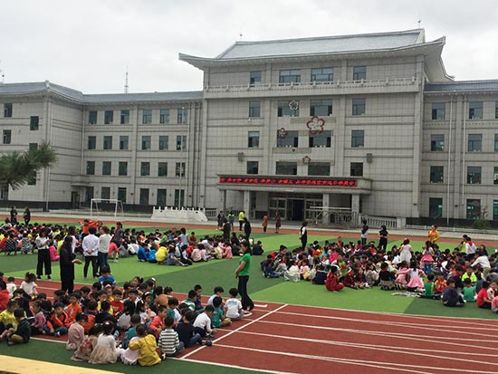 图:朝鲜核试验引发人工地震,吉林省延吉市一家小学的学生在操场避险\路透社