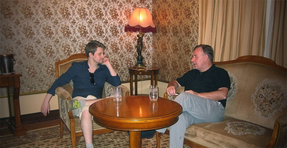 今年6月,斯诺登(左)在莫斯科再会田光誉/网上图片