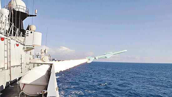 在此次中俄联合军演中,中方可能演练用岸基巡航导弹和反舰导弹对敌方包括神盾舰等目标进行超饱和打击。图为中国舰艇发射鹰击系列反舰导弹/资料图片