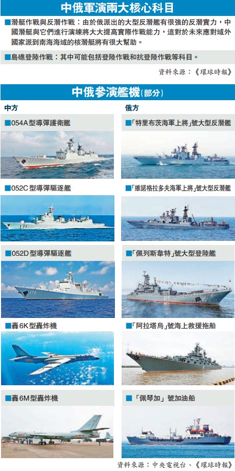 军事专家李杰表示,中俄可能会在本次演习中突出两个核心科目,一个是潜艇作战与反潜作战,另一个核心科目是岛礁登陆作战。