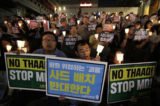 韩国在7月宣布引入的美国萨德系统,原定部署于庆尚北道星州郡的星州炮台,但星州郡民众担心会危及个人健康并毁掉当地农业经济,不惜以血书方式誓死抗争。与地方政府协商后,韩国国防部于8月29日宣布了备选方案,星州高尔夫球场、厌俗山和喜鹊山作为炮台的后备。