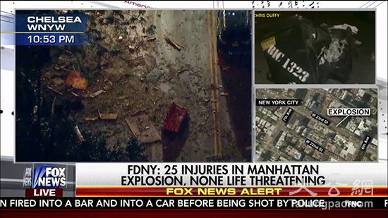 纽约警方表示,当地晚间八点半左右,纽约市中心西23街与六大道交界的切尔西一带,一个路边的垃圾筒发生爆炸,造成26人受伤。