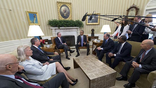 美国总统奥巴马在白宫会见俄亥俄州州长约翰·卡西奇等人