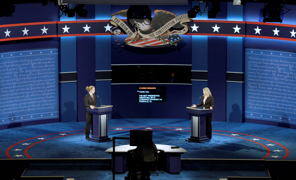 在现实方面,为了让身高163公分的希拉里,在台上看起来不要比188公分的特朗普矮太多,其团队一度要求在辩论的讲台上加一张脚櫈,或者加一个箱子垫脚。然而,总统辩论委员会很快就拒绝了这个要求,但容许希拉里使用一个度身订做、可弥合身高差距的讲台。