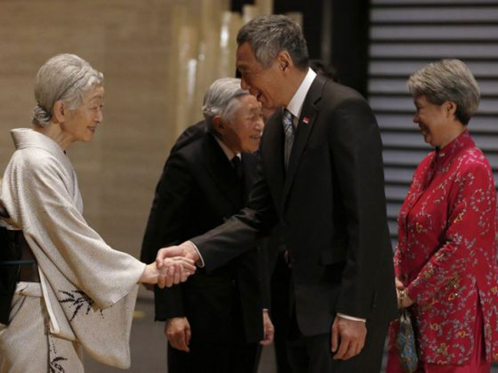 图:李显龙夫妇(右)会见日皇夫妇 网上图片