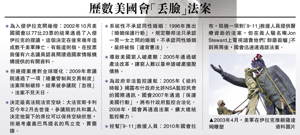 在当天的国会表决中,参众两院先后以97:1和348:77的票数推翻了奥巴马的否决案。大批民主党议员倒戈,跟着共和党议员实现了此次针对奥巴马的背叛。参议院唯一的反对票,来自内华达州民主党参议员哈里.里德,他没有连任压力,他已经宣布本届任满后退休,因此可以随性投票。