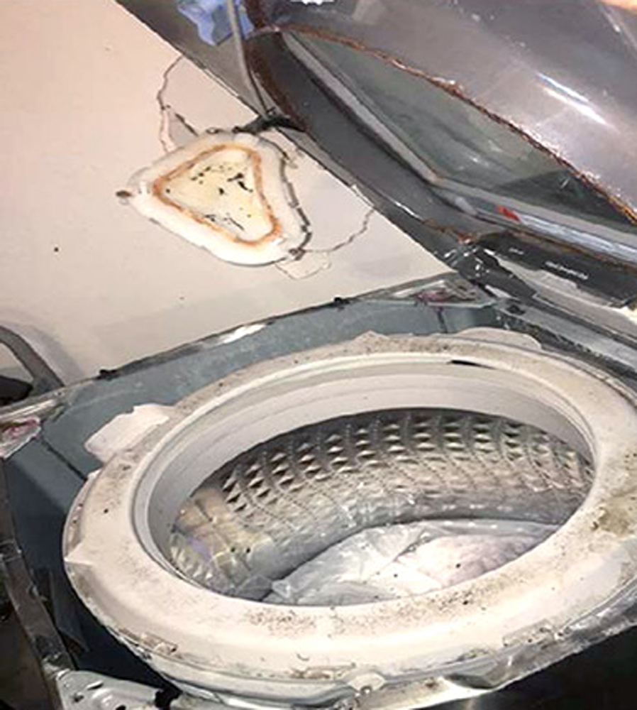 图:有洗衣机的上盖完全被炸飞/网络图片