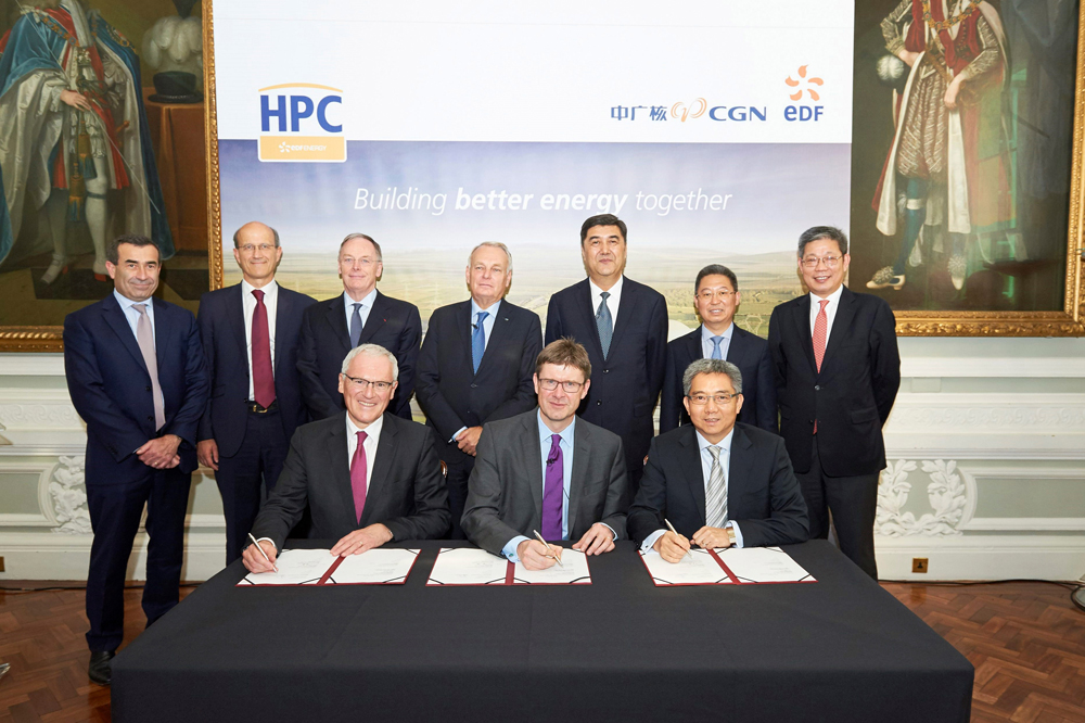 英国商务大臣祈国光、法国外长艾罗、中国国家能源局局长努尔.白克力和中广核董事长贺禹等出席了伦敦的签约仪式。英国政府说,今次签署协议标誌着英国核电新时代踏出重要一步。祈国光表示,欣克利角核电站的合同签署是个关键时刻,它将在确保我们未来低碳能源安全方面发挥重要作用。