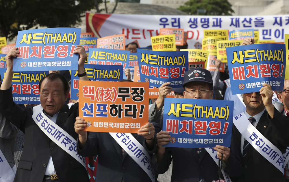图:韩国老兵组织9月30日在首尔示威,反对部署萨德\美联社
