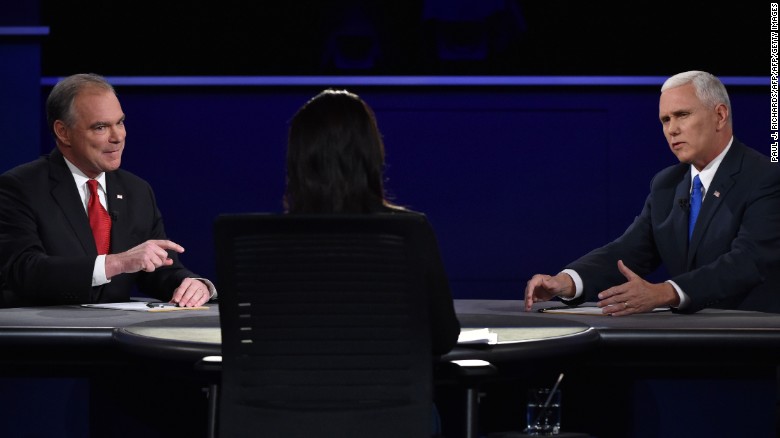 辩论开场仅几分钟,民主党副总统候选人凯恩就火力全开对共和党总统候选人特朗普发起攻击:他批评特朗普拒绝公开税表,连续18年未纳税;批评特朗普蔑视妇女和非裔美国人,戏辱前选美冠军为猪小姐,并发起针对奥巴马的出生阴谋论;批评特朗普尊崇普京……。他指责共和党将赌注押在一场由人身攻击主导的竞选运动上。