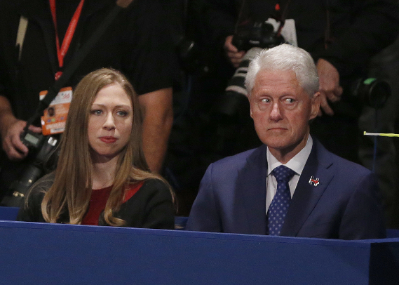 图:克林顿(右)被摆上台,眼神犀利成网友热话/法新社