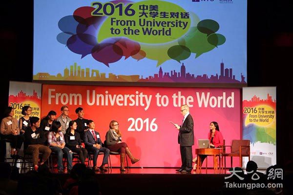 大公网10月12日讯(驻纽约记者黄晓敏)由中国国际广播电台、纽约中国广播网和纽约大学共同举办的 中美大学生对话,11日晚在纽约大学举行。学生们就中美关系、中美饮食,以及两国年轻人最喜欢的对方的城市等话题进行了坦诚而热烈的交流。