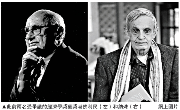 据法新社报道:经济学奖的名字一直惹来争议,因为这个奖项并非由诺贝尔设立,而是由瑞典中央银行为纪念央行成立300周年而设立。诺贝尔的后人皮特.诺贝尔斥责,指诺贝尔并无意愿成立经济学奖。经济学奖的评审委员由瑞典皇家科学院任命,曾选出具争议性人物,如偏向小政府大市场主张的佛利民(MiltonFriedman)及被指反犹太的纳殊(JohnNash)。