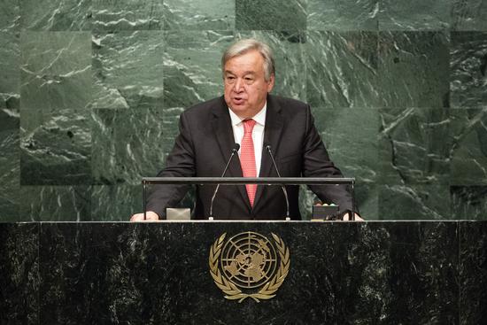 10月13日,在位于纽约的联合国总部,候任联合国秘书长古特雷斯发表演讲。新华社记者李木子摄