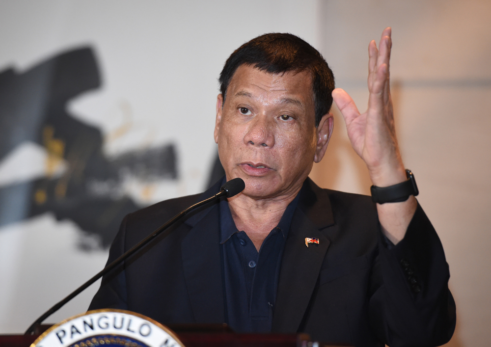 图:19日,正在对中国进行国事访问的菲律宾总统杜特尔特在北京举行记者会,会见中外记者并回答提问。中新社