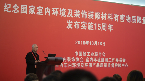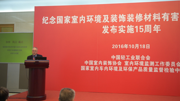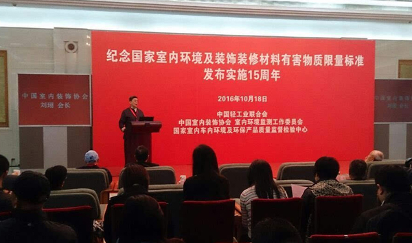 10月18日,纪念国家室内环境及装饰装修材料有害物质限量标准15周年大会在人民大会堂召开。会上围绕全国室内车内环保行业创新发展进行了深入探讨,发布国家室内环境装饰装修和家具污染控制行动计划。原国家质监局原副局长李保国;中国工程院院士侯立安;国家室内车内环境及环保产品质量监督检验中心主任宋广生;中国轻工业联合会处长李英;中国室内装饰协会会长刘珝;中国消费者协会主任张德志;中国疾病预防控制中心研究员陈烈贤等领导出席本次会议。