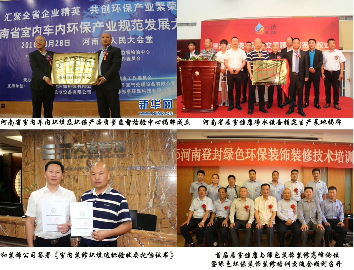 今年3月28日在国家室内车内环境及环保产品质量监督检验中心的指导下,由省内多家行业协会、科研院校、企事业单位联合成立的河南省室内车内环境及环保产品质量监督检验中心在省人民大会堂揭牌。成立后的河南中心积极探索和政府相关职能部门、大中专院校、相关产品及服务企事业单位的联合,协助政府、规范行业、帮助企业、服务大众,开展省内室内车内环境及环保产品质量监督检验、和行业自律发展工作。与省内高校联合开展室内环保技术创新应用项目,筹备成立专业领域的产学研基地和产品的生产基地,并顺利挂牌成立河南省居室健康净水设备指定生产基地。携手装饰企业开展环保装饰装修技术创新,并和河南超凡、郑州大铭、深圳嘉道、郑州钟凯丽等省内知名装饰企业签署《室内装修环境达标验收委托协议书》,协力打造室内空气质量环保达标的装饰装修工程。9月28日,在相关政府部门和行业协会的支持下共同举办“首届居室健康与绿色装饰装修高峰论坛暨绿色环保装饰装修培训交流会”,探究室内环境装饰装修和家具污染控制实施的相关问题。并在全国范围内率先实施国家室内环境装饰装修和家具污染控制行动计划。![]()