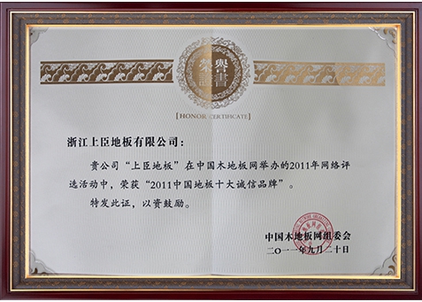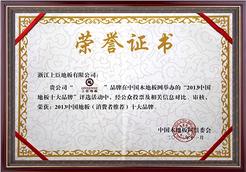 每年,由中国木地板网主办评选的中国地板十大品牌,都要通过层层的严格甄选,从众多地板品牌中选出最具雄厚实力与优质市场口碑、美誉度的品牌。而上臣地板一直以来都稳居领先地位,凭借美学设计、环保性能、A家服务等综合品牌优势,连续六年荣膺“中国地板十大品牌”荣誉称号!强大的品牌价值使得上臣地板成为亿万家庭的首选,开创了地板十大品牌畅销时代!