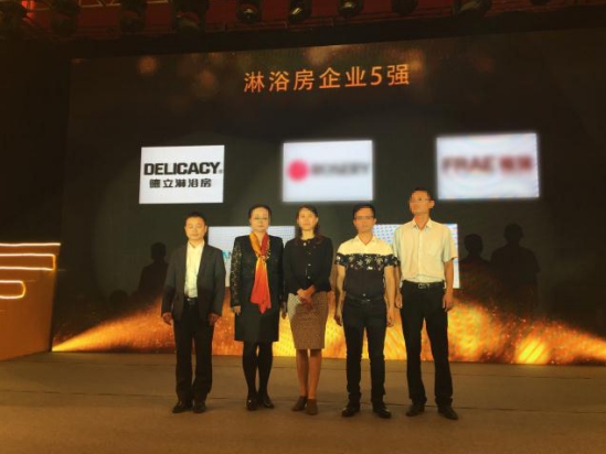 (厨卫百强颁奖典礼现场—德立淋浴房品牌部经理杨朝煦(左一)接受颁奖)