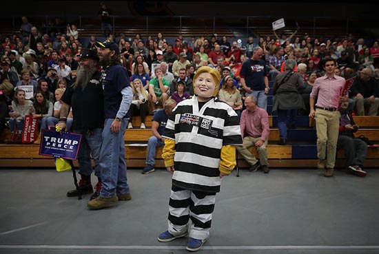 图:特朗普支持者扮成希拉里穿囚服的样子\法新社