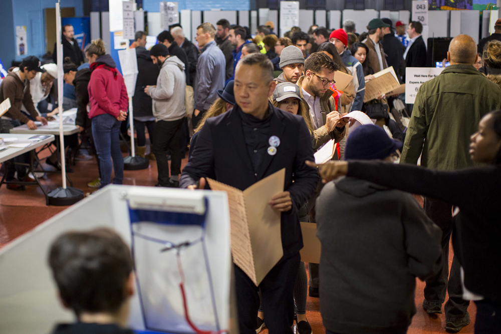 早上九点左右,记者来到位于唐人街孔子大厦的投票站。孔子大厦是一座政府公屋,这里的票站没有市中心的那么拥挤,投票的选民多以上了年纪的华裔老年人为主,投票井然有序,一些社工向不会英文或不懂投票的人提供咨询和帮助。据社工介绍,这个投票站要到中午时分人才会多起来。