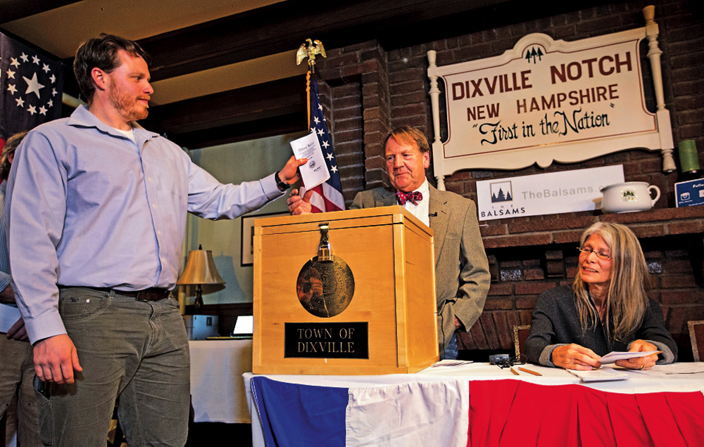 迪克斯维尔山口镇只有75人,符合选民资格的只有八人,却总在美国总统选举成为全国焦点,因为它是最早开票的地方,今年到访的记者更是投票总数的五倍。当天凌晨,有七人到场投票,五男两女,另有一人以缺席方式投票。结果也立即开出,民主党候选人希拉里以四票击败获得两票的共和党对手特朗普。自由党总统候选人约翰逊也拿到一票,还有一张票上面用写的,投给2012年败选的共和党总统候选人罗姆尼。