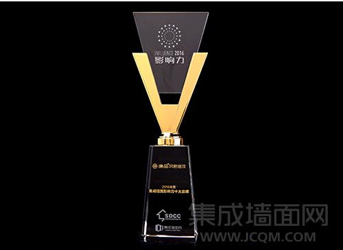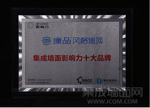 (原标题:康品风格墙顶荣获“2016年度集成墙面影响力十大品牌”)