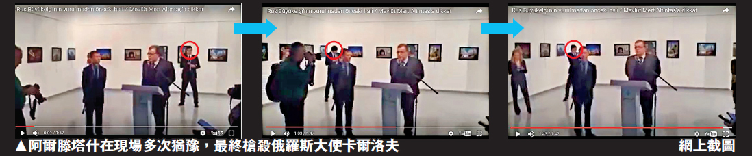 图:阿尔滕塔什在现场多次犹豫,最终枪杀俄罗斯大使卡尔洛夫 网上截图