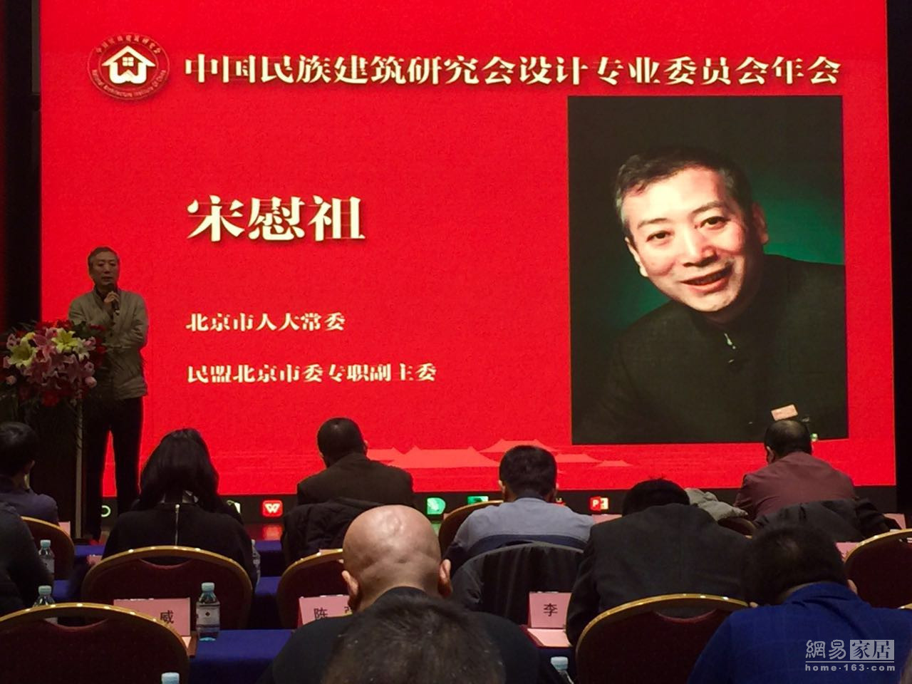 2017年1月8日,中国民族建筑研究会设计专业委员会年会暨设计委智库专家2017新春团拜会在北京京瑞国际酒店召开,共论中国民族建筑设计的未来发展。北京市人大常委、民盟北京市委专职副主委宋慰祖、国家推进一带一路建设领导小组办公室、商务部援外司处长李彪、清华大学美术学院环艺系主任宋立民、清华大学美术学院环艺系书记李朝阳、中国民族建筑研究会副会长、中国装饰集团有限公司董事长李杰峰、中国民族建筑研究会副会长、北京恭王府古建园林建设有限公司董事长刘燕民、中国民族建筑研究会副会长、重庆林德森实业有限公司董事长任重远、中国民族建筑研究会秘书长邓千、中建城镇规划发展有限公司总经理、中建设计集团有限公司副总建筑师辛同升、九源国际设计院董事长、筑梦乡村孵化器创始人江曼、中建三局建筑装饰工程有限公司北方公司经理夏庆、中国人民大学艺术学院副教授郑晓红、北方工业大学土木工程学院教授、系副主任王建省、北京爱迪尔建筑设计有限公司董事长罗劲、土成木寸&乡村细作创始人梁军、筑邦建筑环境艺术设计院副院长张波、宁波燎原灯具有限公司设计总监吴瑛瑛等领导和专家以及设计委主任、副主任、秘书长、副秘书长及来自全国各地120余位设计委委员和新闻媒体的代表参加了本次年会。