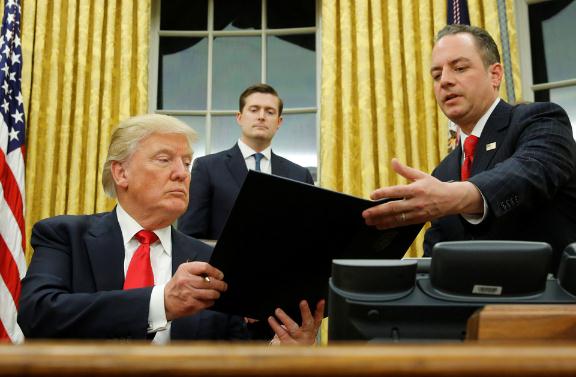 图:特朗普签署总统行政命令,限制奥巴马医保的负担 路透社