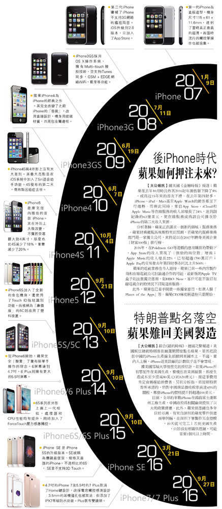 2016年苹果营收下滑8%,达到2160亿美元(约1.68万亿港元);营业获利减少16%,达到600亿美元。其主因是iPhone销售业绩不佳,这一状况也是自2007年推出iPhone以来首次出现。