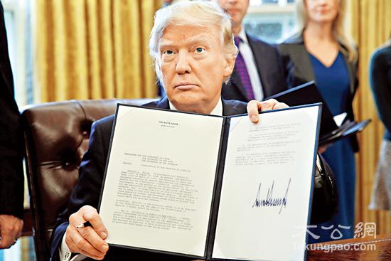 美国总统特朗普就任以来接连签署多个行政命令找数,兑现其竞选期间开出的空头支票。资料图