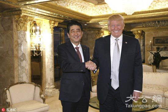 早在特朗普就职前,安倍曾亲赴纽约与特朗普会晤。图片来源东方IC