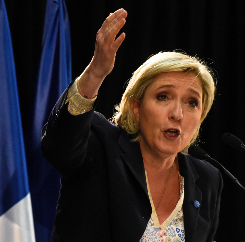 大公网2月26日讯 综合英国广播公司、《华盛顿邮报》报道:法国总统大选一项最新民调显示,极右翼候选人勒庞(见图)在首轮选举中将获得26.0%选民支持,领先对手马克龙和菲永。