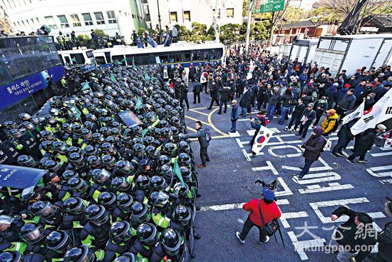 为预防反朴战挺朴任何一方认可裁决触发,警方当天启动第一流此外甲号鉴戒令,正在法院地方办公大楼及青瓦台右近一带投入21600名警力,法院周围安插360辆大巴者。正在法院宣判后,韩国朝野遍及接管这一,但不少支撑朴槿惠的捧首痛哭,有人试图打击警方包抄法院的防地。两边迸发冲突,紊乱中隐场冒起浓烟。组织声称,冲突形成2人,8人轻伤,此中1人危殆。