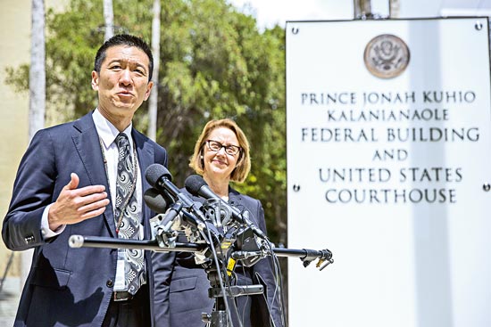 美国夏威夷州查察幼金士敬15日正在法院外举行记者会。法新社